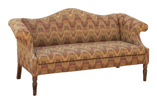 Shown in Historic Flame 6001 Sandstone fabric and Walnut wood.